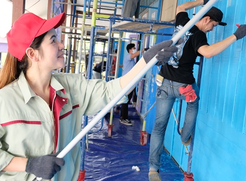 「ボランティアで善を行い、夢に彩りを添えよう」というプロジェクトを企画し、幼稚園~中学生相当の子供が通う学校校舎の外観をきれいにしました。