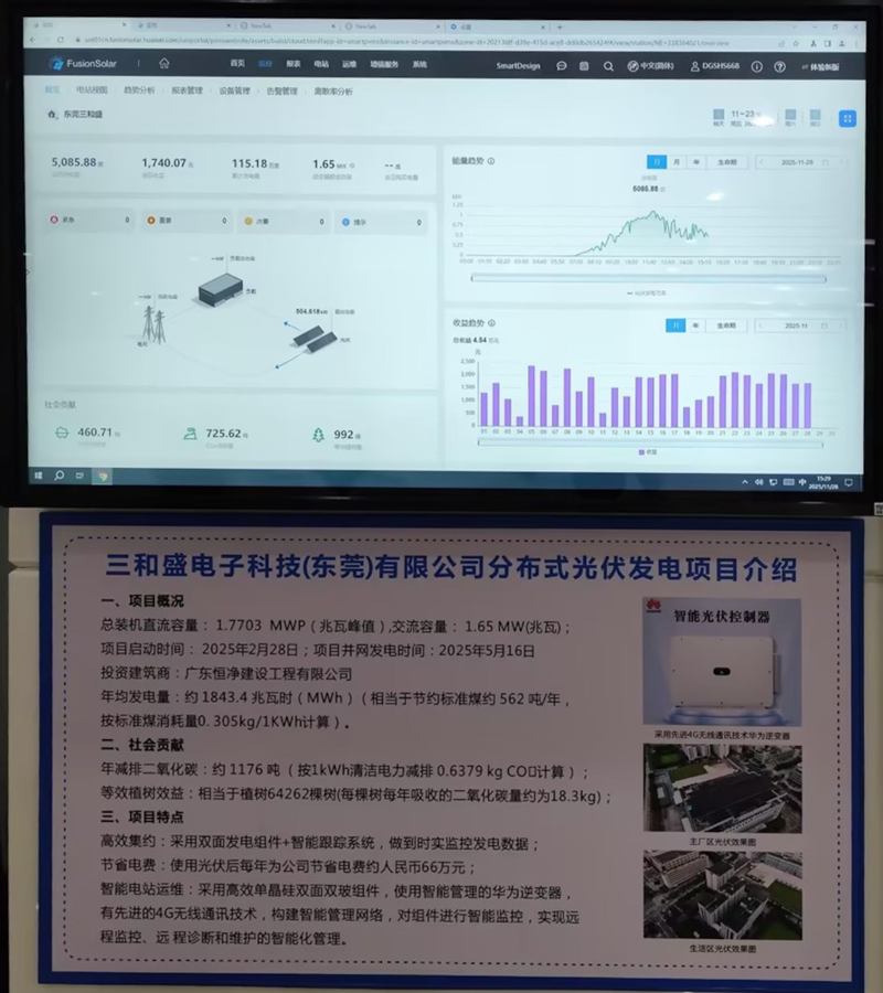 広東省東莞市の東莞工場において、2025年5月より太陽光発電システムを稼働しています。