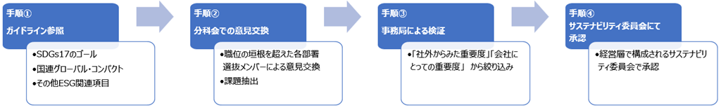 そしてこのたび、今後の当社グループにとってのさまざまな中長期課題や、社会・お客様をはじめとした多くのステークホルダーのみなさまからの要請を踏まえ、サステナビリティ重要課題(マテリアリティ)を策定いたしました。