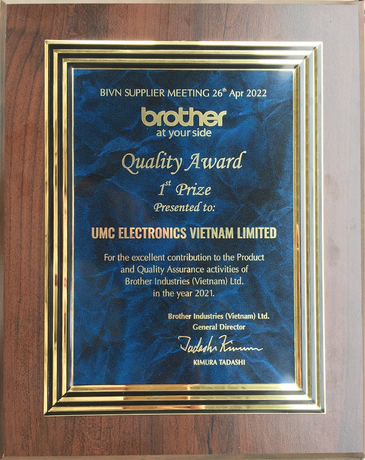 ブラザー工業株式会社(ベトナム)様より当社の2019年度における活動が評価され、『品質賞』第1位の表彰を頂きました。