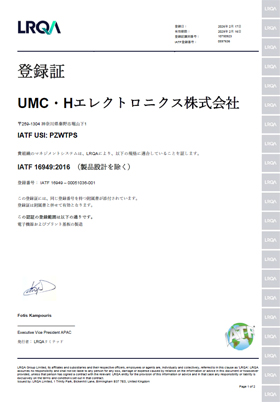品質マネジメントシステムに関する国際規格ISO9001においては、IATF16949の認証取得計画に伴い、従来の認証機関からLRQAに移行しました。