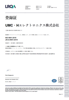 ”UMC・Hエレクトロニクス株式会社 環境マネジメントシステム"を構築・運用します。